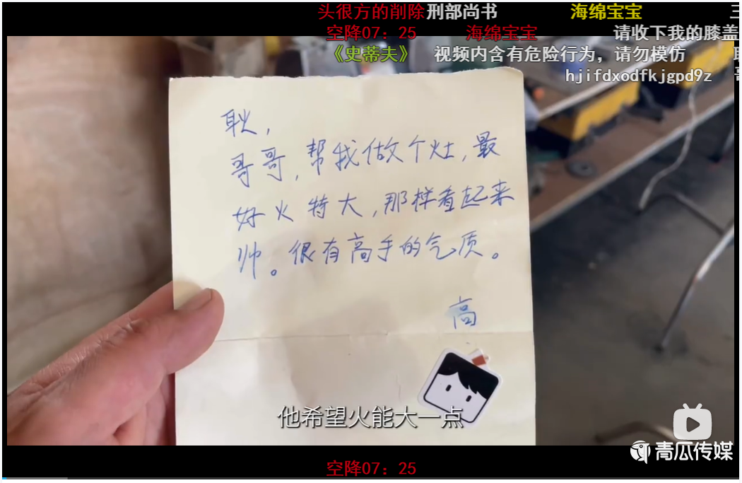 就拿近期B站热门的钟薛高x手工耿的合作视频《自制咳反应功夫灶》来说,钟薛高品牌很好诠释了“共创”内容。在视频开头,钟薛高的形象就以一封信出现:歪歪扭扭的小学生字体、接地气的模糊字迹和“头很方”的形象。在信中,钟薛高拜托手工耿“做个灶”,作为合作视频的引子。