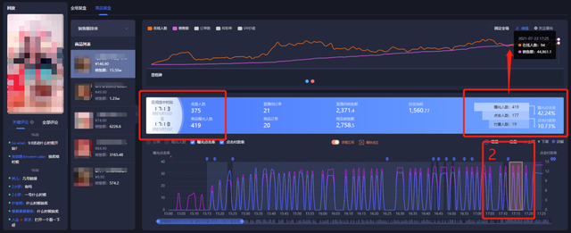 通过【商品分段复盘】,对比下面两段憋单时段,发现时段1的曝光点击率和点击付款率都时段2高,说明时段1这样的憋单节奏转化效果更好。时段2的憋单时长太短,没有明显效果